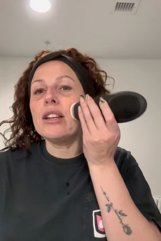 -3: Activeer de warmte en vibratiestand en maak bewegingen van binnen naar buiten en van onder naar boven in het gezicht.