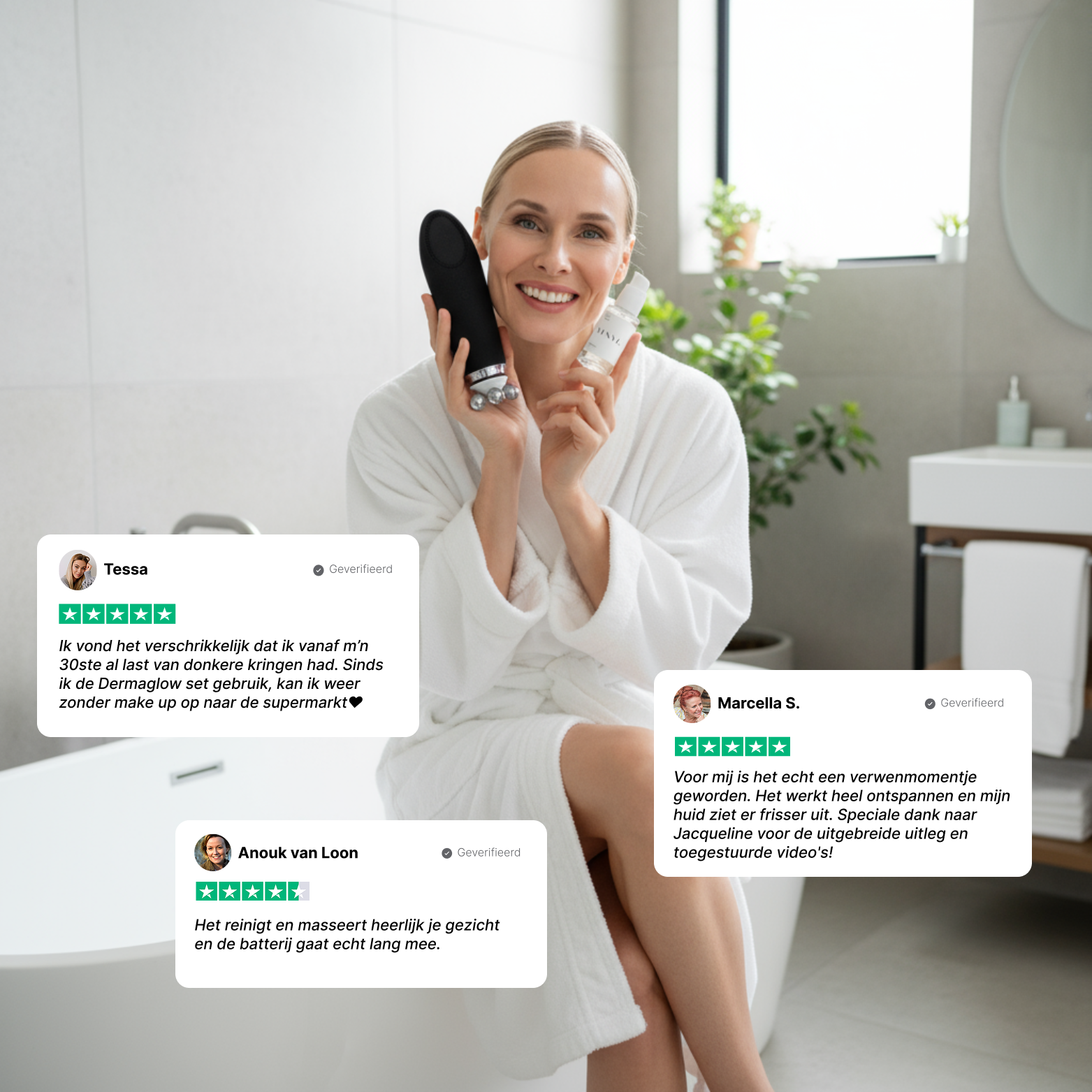 "Ik ben echt tevreden met mijn aankoop. Ik gebruik het nu sinds 3 weken en zie al geweldige resultaten. Zelfs mijn man merkte op dat mijn huid er frisser uitziet." - Sabine, Nijmegen